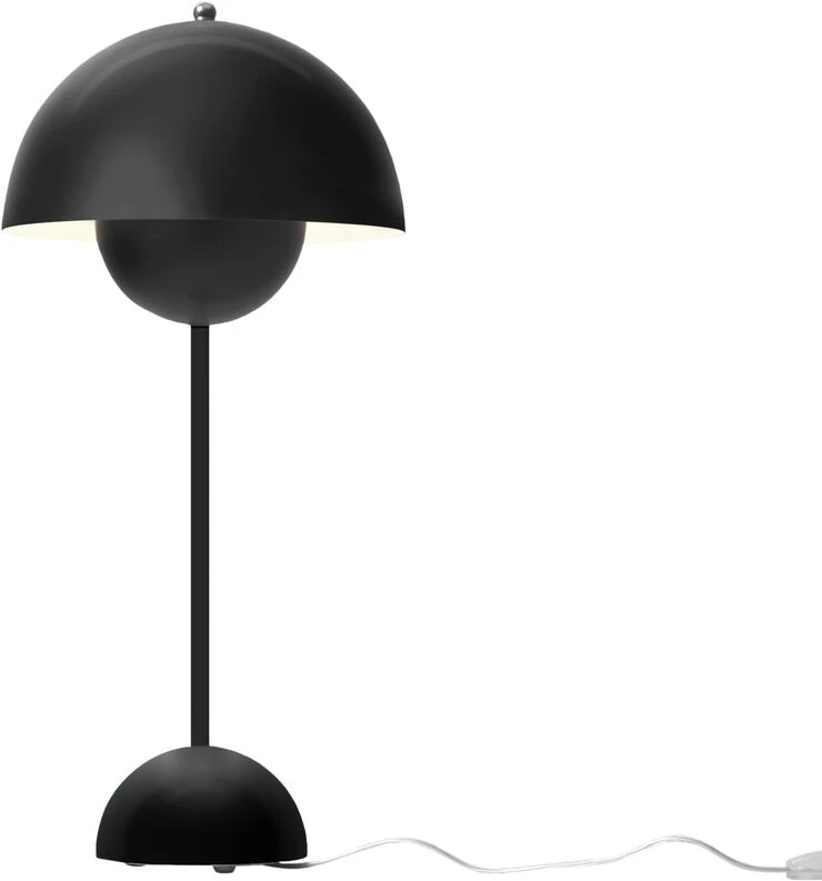 Flowerpot bordlampe VP3, mat sort<br><br>Lampen er designet af Verner Panton og flowerpot serien indeholder flere forskellige modeller i en stor variation af farver.<br><br>Ledning: 200 cm<br>Vægt: 4.5 kg<br>Strøm: 220-240V – 50HZ<br>Lyskilde: E27 max 40 Watt