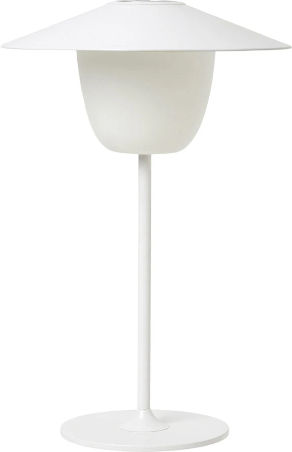 Alsidig, tilpasningsdygtig og lysende smuk. Den mobile LED ANI LAMPE med stativ er lavet af mat pulverlakeret aluminium og kan bruges overalt takket være det integrerede batteri. Den kan bruges som bordlampe, liggende på bordet eller man kan hænge den op. Drejer man lampeskærmen, ændres lyskeglen. To niveauer af lysstyrke samt tænd og sluk kan styres ved kort at berøre ringene på lampeskærmen. For at genoplade kan lyset blot placeres på opladeren og oplades med USB-kablet. Reb, ladestation og USB-kabel medfølger. Indendørs/udendørs brug, brændetid: 8 til 16 timer, stænksikker.