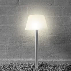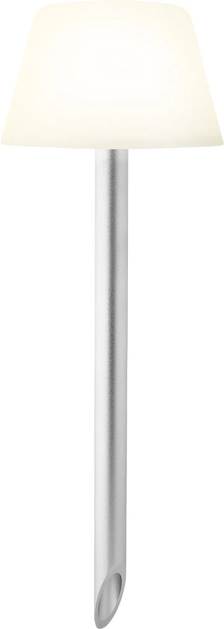 Dekorativt havespyd, der giver aftentimerne i haven et helt særligt og stemningsfuldt skær. SunLight havespyd er nemt at stikke i jorden overalt, hvor du ønsker. Sæt ét eller flere spyd langs indkørsel, havegang eller i et smukt blomstrende bed eller en blomsterkrukke. Det energirigtige lampespyd er 100% soldrevet med integrerede og skjulte solceller og lader op i solen om dagen. Spyddet er ledningsfrit og med praktiske funktioner som skumringssensor (lampen tænder automatisk, når mørket falder på) og strømbesparende autosluk efter 6 timer. Lampen har op til 20 timers brændetid på fuld opladning (8 timer i solen), genopladeligt batteri og LED-pære. Skærmen kan skrues af, og lampen rengøres med en opvredet klud. Tåler at stå ude hele året. Fremstillet i kunststof og aluminium. Mål: H: 37 x Ø: 13,5 cm.