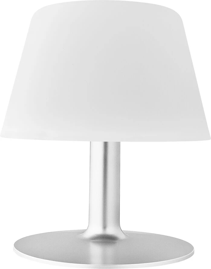 Skab et stemningsfuldt lounge-uderum med en SunLight Lounge solcellelampe. Den energirigtige lampe er 100% soldrevet med integrerede og skjulte solceller og lader op i solen om dagen – eller via mini-USB-stik (ledning til oplader medfølger). Lampen er ellers ledningsfri og med praktiske funktioner som skumringssensor (lampen tænder automatisk, når mørket falder på), 3 lysstyrker og strømbesparende autosluk efter 6 timer. Lampen har op til 20 timers brændetid på fuld opladning (8 timer i solen), genopladeligt batteri og LED-pære. Skærmen kan skrues af, og lampen rengøres med en opvredet klud. Tåler at stå ude hele året. Fremstillet i kunststof og stål. Mål: H: 24,5 x Ø: 21 cm.