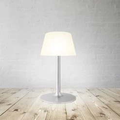 Skab et stemningsfuldt lounge-uderum med en SunLight Lounge solcellelampe. Den energirigtige lampe er 100% soldrevet med integrerede og skjulte solceller og lader op i solen om dagen – eller via mini-USB-stik (ledning til oplader medfølger). Lampen er ledningsfri og med praktiske funktioner som skumringssensor (lampen tænder automatisk, når mørket falder på), 3 lysstyrker og strømbesparende autosluk efter 6 timer. Lampen har op til 20 timers brændetid på fuld opladning (8 timer i solen), genopladeligt batteri og LED-pære. Skærmen kan skrues af, og lampen rengøres med en opvredet klud. Tåler at stå ude hele året. Fremstillet i kunststof og stål. Mål: H: 50,5 x Ø: 28 cm.