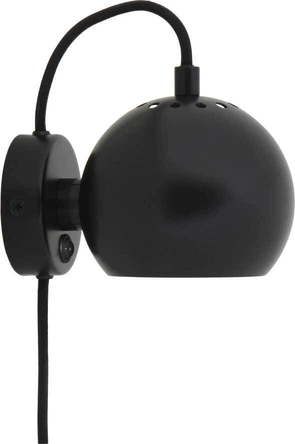 Ball magnet væglampe mat sort Ø: 12 cm. E14 max 25W med 2,3 m sort tekstil ledning
