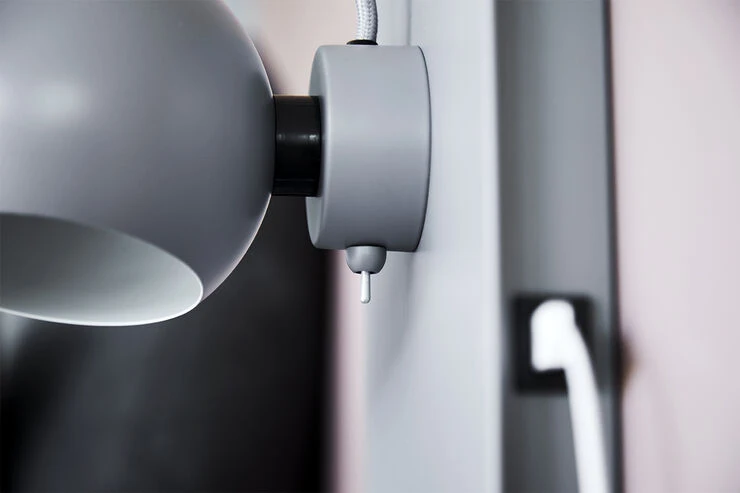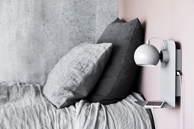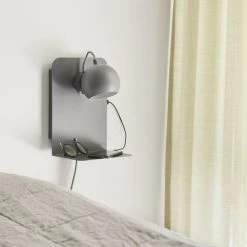 Ball væglampe med USB mat grå. Skærm ø12 cm. Højde 30 cm. E14 max 25W med 2,5 m grå tekstil ledning