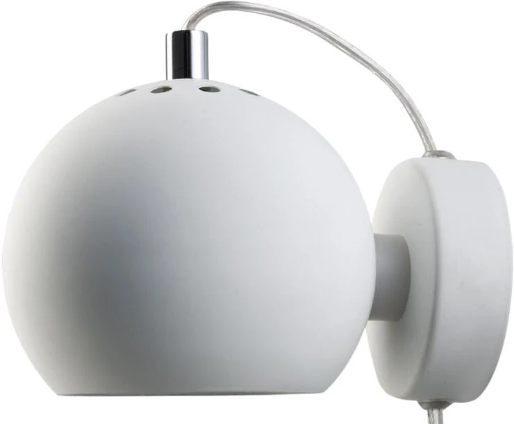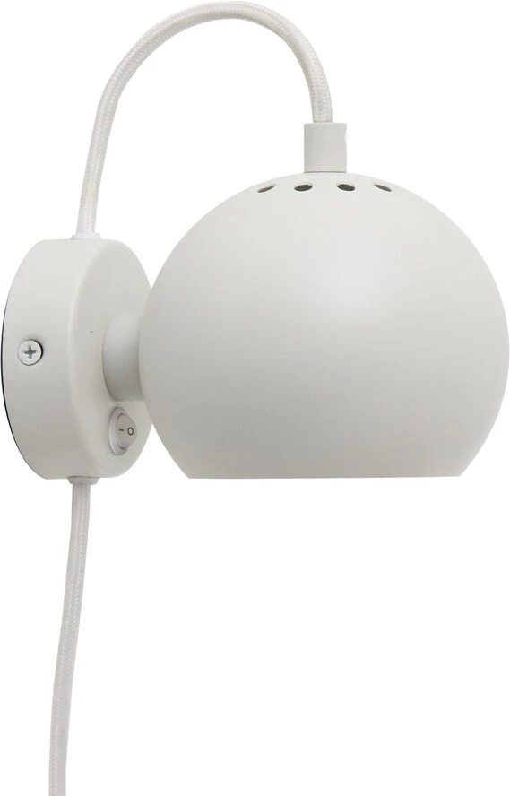 Ball magnet væglampe mat hvid Ã12 cm. E14 max 25W med 2,3 m hvid tekstil ledning