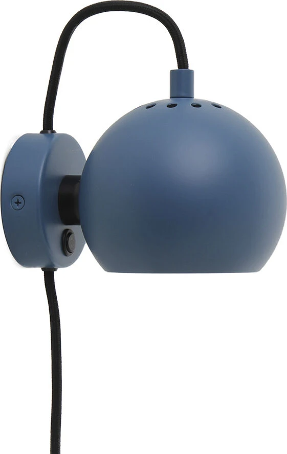 Ball magnet væglampe mat petrol blÃ¥ Ã12 cm. E14 max 25W med 2,3 m sort tekstil ledning
