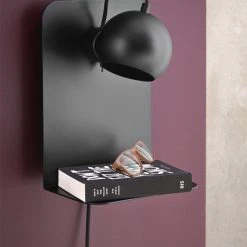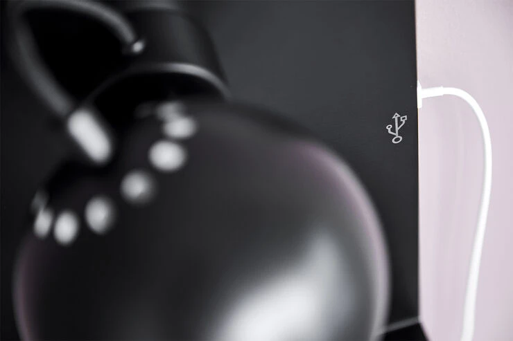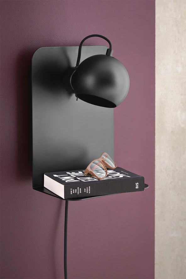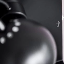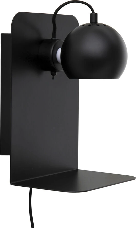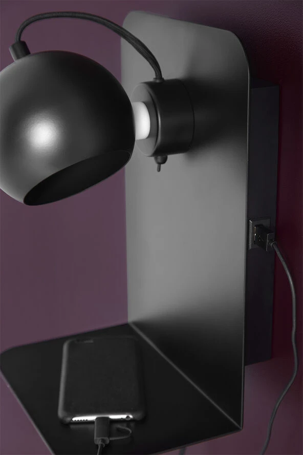 Ball væglampe med USB mat sort. Skærm Ã12 cm. Højde 30 cm. E14 max 25W med 2,5 m sort tekstil ledning