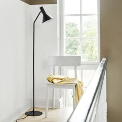 Indlysende enkel lampe til gulvet. Lampeserien LYSS trækker på dansk designarvs fineste dyder med sin indlysende, minimalistiske form og fuld fokus på funktionalitet. En skærm, en arm og en fod. Det er i princippet elementerne til en gulvlampe. Men når FRANDSEN RETAIL med 50 års erfaring i baghånden formgiver hver af de tre elementer med største omhu og skaber et sjældent harmonisk hele, så får du en lampe, der er hævet over flygtige trends. Den koniske skærm med reflekterende, hvid inderside sørger for, at lyset kastes lige derhen, hvor du behøver det. Mellem skærm og arm sidder et vippeled, og ender i en enkel fodplade med tyngde nok til, at lampen står stabilt. Lampen er monteret med praktisk fodafbryder og tekstilledning for at fuldende det enkle, monokrome look. LYSS i mat lysegrå og mat sort passer i de fleste indretninger, mens den varmt gullige ’mat almond’ står særligt flot til netop den danske designguldalders varme træsorter som teak, røget eg og palisander. Designer: Frandsen Design Studio Lyskilde: Der medfølger ikke pære, når du køber lampen. Denne købes separat. Fatning: E27. Max. 25 watt. Ønsker du at tilslutte lysdæmper til lampen, skal du være opmærksom på at bruge en pære, der kan tåle tilslutning til lysdæmpning. FRANDSEN RETAIL: Frandsen Retail A/S har skabt og markedsført et bredt sortiment af designlamper siden 1968. Mange af Frandsens lamper er blevet nutidige klassikere.