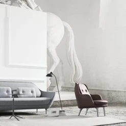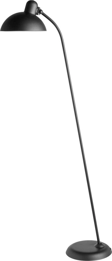 KAISER idell er originalt Bauhaus-design, og serien er bygget op omkring et verdenspatenteret kugleled (1930) samt den karakteristiske lampetop med prægningen – ""ORIGINAL KAISER-idell"". Lamperne er fremstillet i stål og messing. Skærmene er håndlakerede i højglans eller mat (kun i sort), og de forkromede dele af lampen består af håndpoleret og sølvloddet messing. Den kipbare gulvlampe fås i sort, matsort og hvid.