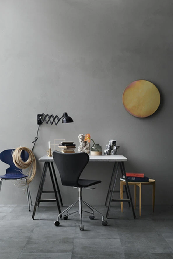 KAISER idell er originalt Bauhaus-design, og serien er bygget op omkring et verdenspatenteret kugleled (1930) samt den karakteristiske lampetop med prægningen – ""ORIGINAL KAISER-idell"". Lamperne er fremstillet i stål og messing. Skærmene er håndlakerede i højglans eller mat (kun i sort), og de forkromede dele af lampen består af håndpoleret og sølvloddet messing. Væglampen, mere kendt som sakselampen, fås i sort, matsort og hvid.