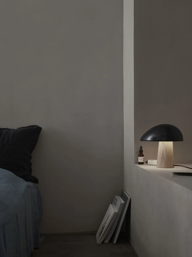 Det stemningsfyldte lys har været designer Nicholai Wiig Hansens udgangspunkt for udviklingen af bordlampen Night Owl™. Bordlampen er uformel og ukompliceret. Den består af en kegleformet base og en stram, ovalformet skærm som ubesværet glider sammen til en enhed, hvor proportionerne er fint afbalanceret. Det organiske formsprog giver lampen et enkelt, venligt og nærmest humant udtryk. Farverne er navngivet med inspiration fra naturen: Midnight Blue efter den uendelige blå nattehimmel, der skes ved skumringstid, og Smokey White efter skyerne cremehvide nuance, der opstår når sollys spredes. Den lille bordlampe udsender et nedadrettet, varmt og hyggeligt lys. Med sin asymmetriske skærm opfattes Night Owl™ retningsbestemt, hvilket understreget af lysets ovale spredning. Skærmen kan indtage 4 forskellige, vinkelrette positioner, således den sorte ledning diskret kan forlade lampen i den ønskede retning. Night Owl™ skaber hyggelige lysrum og kan med fordel anvendes på skænken, i reolen, ved natbordet eller i vinduet.
