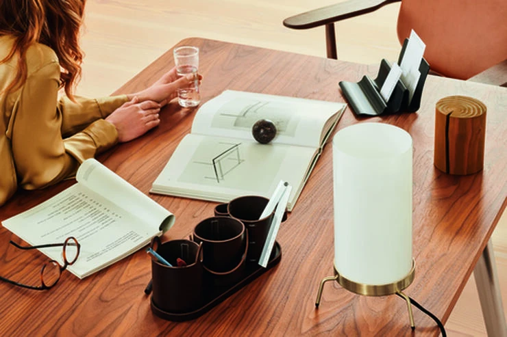 Fritz Hansens Planner-bordlampe, som er den nyeste tilføjelse til Fritz Hansens Planner-serie af relancerede design fra 1950’erne af den nu afdøde amerikanske designer Paul McCobb, emmer af minimalisme og har en udpræget skandinavisk stil. Det gennemtænkte, praktiske design er beviset på, at det enkle også kan være smukt, og spreder lyset fra en skærm i håndblæst, matteret glas, som giver en varm og stemningsfuld glød. Den trebenede fod i blank messing eller sort pulverlakeret stål giver en elegant kontrast til den høje, cylinderformede skærm. Planner-bordlampen er ideel til rum, hvor pladsen kan være trang – eller til at lyse rummet stemningsfuldt op. Den er ganske vist lille, men gør et stort indtryk: den diskrete silhuet kan lyse ethvert rum op på den smukkeste måde – på skriveborde og natborde, i entréer og på bordplader.
