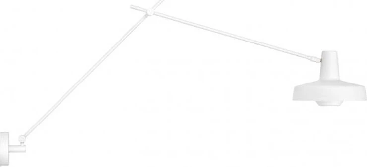 Arigato L væglampen har et funktionelt og smart design, der kan passe ind flere steder i hjemmet. Væglampens arme kan justeres op og ned, samt fra side til side 180°, og lampehovedet kan roteres rundt, så man nemt kan retningsbestemme lyset. Lampen lyser blændfrit og diffust, da lyset reflekterer fra den hvide inderside af skærmen, og lyskilden er skjult med en blænde.