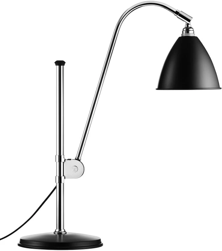 BL1 Bordlampe designet af Robert Dudley Best Bestlite har været i produktion siden 1930. Winston Churchill er ligger blandt Bestlites mange berømte brugere. Bestlites design blev udtænkt af Robert Dudley Best, som var stærkt påvirket af Bauhaus. Bauhaus var en skole i Tyskland, som samlede praktisk håndværk med den finere kunst og blev berømt for det design koncept, der blev publiceret og undervist. Bauhaus havde en dybtgående indflydelse på den efterfølgende udvikling i kunst, arkitektur, grafisk design, indretning og industrielt design og Bauhaus-stilen blev en af de mest indflydelsesrige kræfter bag modernistisk arkitektur og moderne design. Firs år senere og Bestlites design forbliver tæt på sine industrielle rødder og oprindelige design. Robert Dudley Best Bordlampe Designer: Robert Dudley Best Type: Bordlampe Materiale: Aluminium Ledningstype: Tekstil Ledningslængde i alt: 2000 mm Farve: Sort, krom Skærm højde: 140 mm Skærm diameter: Ø210 mm Lampe højde: 510-840 mm Fatning: E14 Anbefalet pære: Halogenpære Anbefalet watt: 28W Max watt: 28W