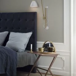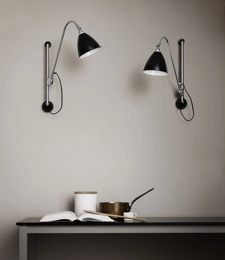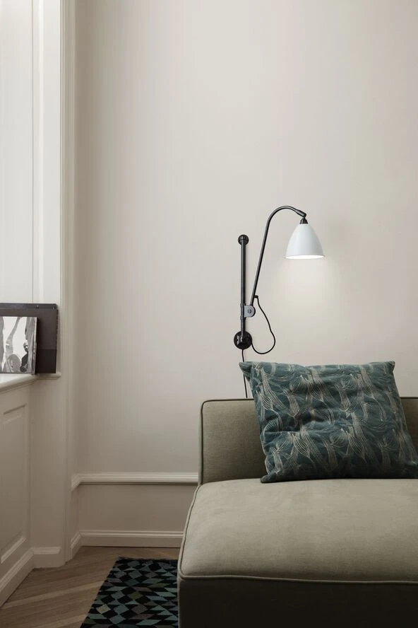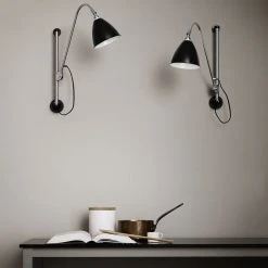 BL5 væglampe designet af Robert Dudley Best Bestlite har været i produktion siden 1930. Winston Churchill er ligger blandt Bestlites mange berømte brugere. Bestlites design blev udtænkt af Robert Dudley Best, som var stærkt påvirket af Bauhaus. Bauhaus var en skole i Tyskland, som samlede praktisk håndværk med den finere kunst og blev berømt for det design koncept, der blev publiceret og undervist. Bauhaus havde en dybtgående indflydelse på den efterfølgende udvikling i kunst, arkitektur, grafisk design, indretning og industrielt design og Bauhaus-stilen blev en af de mest indflydelsesrige kræfter bag modernistisk arkitektur og moderne design. Firs år senere og Bestlites design forbliver tæt på sine industrielle rødder og oprindelige design. Robert Dudley Best Væglampe Designer: Robert Dudley Best Type: Væglampe Materiale: Aluminium Ledningstype: Tekstil Ledningslængde i alt: 2400 mm Ledningslængde uden for lampe: 2000 mm Farve: Sort, krom Skærm højde: 140 mm Skærm diameter: Ø160 mm Lampe højde: 470-800 mm Fatning: E14 Anbefalet pære: Halogenpære Anbefalet watt: 28W Max watt: 28W