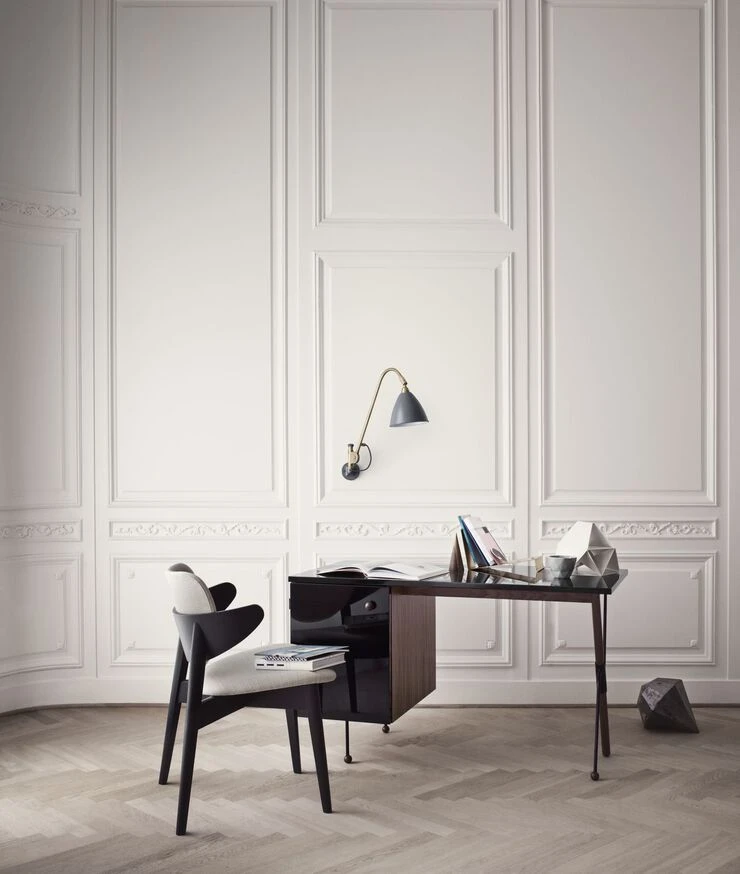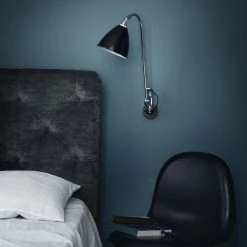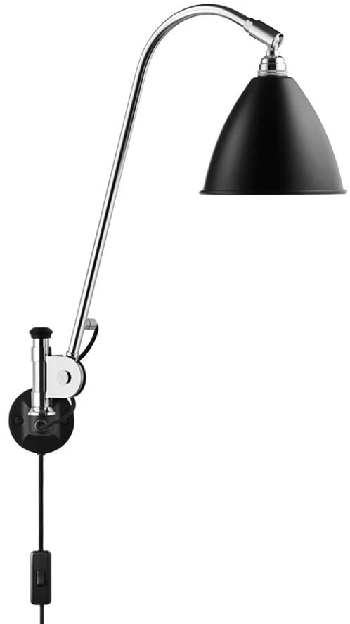 BL6 Væglampe designet af Robert Dudley Best Bestlite har været i produktion siden 1930. Winston Churchill er ligger blandt Bestlites mange berømte brugere. Bestlites design blev udtænkt af Robert Dudley Best, som var stærkt påvirket af Bauhaus. Bauhaus var en skole i Tyskland, som samlede praktisk håndværk med den finere kunst og blev berømt for det design koncept, der blev publiceret og undervist. Bauhaus havde en dybtgående indflydelse på den efterfølgende udvikling i kunst, arkitektur, grafisk design, indretning og industrielt design og Bauhaus-stilen blev en af de mest indflydelsesrige kræfter bag modernistisk arkitektur og moderne design. Firs år senere og Bestlites design forbliver tæt på sine industrielle rødder og oprindelige design. Robert Dudley Best Væglampe Designer: Robert Dudley Best Type: Væglampe Materiale: Aluminium Ledningstype: Tekstil Ledningslængde i alt: 2400 mm Ledningslængde uden for lampe: 2000 mm Farve: Sort, krom Skærm højde: 140 mm Skærm diameter: Ø160 mm Lampe højde: 150-420 mm Fatning: E14 Anbefalet pære: Halogenpære Anbefalet watt: 28W Max watt: 28W