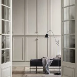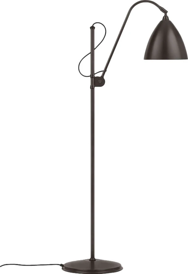 BL3 Gulvlampe designet af Robert Dudley Best The Bestilte BL3 Floor Lamp, i to størrelser, var designet i 1930 af Robert Dudley Best, en britisk designer, der var stærkt påvirket af Bauhausskolen. Dens rene linjer og elegante udtryk er kombineret med funktionsdygtigheden af den justerbare arm, både horisontalt og vertikalt, og bevægelige skærm. Bestilte BL3 Floor Lamp, der fås i forskellige farver og lakker, virker som et læselys i ethvert moderne hjem, hvor iøjnefaldende belysning er et mål. Designet af Bestilte-lampen blev først taget i brug af autoværksteder og det britiske flyvevåbens ingeniørafdelinger på grund af dens funktionsdygtige kvalitet. En reportage i Architects Journal, der lovpriste Bestilte med titlen som det første bevis af Bauhaus-stil i Storbritannien, gav lampen opmærksomhed fra de designbevidste. Efterspørgsel fra offentligheden kom derefter, og efter Winston Churchill personligt valgte the Bestilte BL1 Table Lamp, var Bestiltes ikoniske status fastsat. Bestilte designet holder fast i dens industrielle rødder og er trofast mod dens original design. Bestilte findes i permanente samlinger i både Victoria & Albert Museum og The Design Museum i London. Elsket af arkitekter, designere og designentusiaster igennem en lang historie, Bestilte er i dag blevet en moderne klassiker. Robert Dudley Best Gulvlampe Designer: Robert Dudley Best Type: Gulvlampe Materiale: Aluminium Ledningstype: Tekstil Ledningslængde i alt: 2000 mm Farve: Sort messing Skærm højde: 180 mm Skærm diameter: Ø210 mm Lampe højde: 1130-1520 mm Fatning: E14 Anbefalet pære: Halogenpære Anbefalet watt: 28W Max watt: 30W