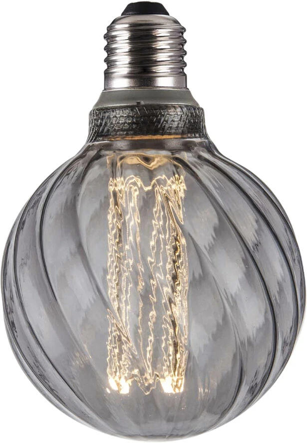 COLORS TWIST Smokelyskilde fra Halo Design er en LED lyskilde der giver et varmt behageligt lys, og med det smukke design med det specielle snoet glas, får man ikk eblot et smukt lys men samtidigt også en pære der afgiver et smukt design i sin form og udstråling. Lyset som ses igennem det smukke dekorative glas er som vi kender det fra de gode gamle dage bare med en mere dagslysfarve 3000 kelvin grader – her får man skabt rammen om at kunne skabe samme stemning med hyggeligt lys til behagelige omgivelse. Lyskilden er med klart smoke glas og spreder lyset 360 grader, hvilket giver den perfekte belysning i rummet. vi kan varmt anbefale hvor den sidder frit synlig i en fatning. Til trods for at den kun forbruger 5 watt, er den og dæmpbar det vil sige at man via sin kontakt i væggen kan dæmpe den i 3 trin, så er der rig muligt for netop at kunne skabe præcis den stemning i rummet man ønsker. TWIST lyskilderne er tillige med Memory funktion, som gør at den husker sidste settings og starter derfor op præcist hvor du slukkede sidst. Serien findes i flere størrelser og farver, der findes også en til din lampe.