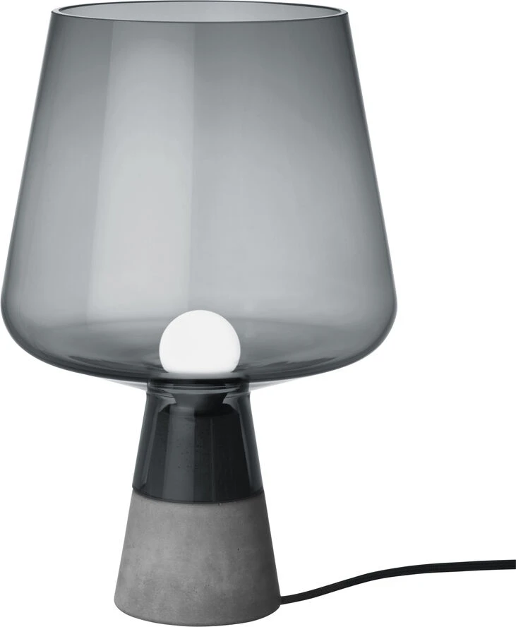 DENNE BORDLAMPE KOMBINERER TUNG BETON MED FINT MUNDBLÆST GLAS, SOM GIVER HVER LAMPESKÆRM SIN EGEN UNIKKE FARVE OG KARAKTER. ANVENDELSEN AF TO SÅ FORSKELLIGE MATERIALER ER ET KLASSISK EKSEMPEL PÅ PETTERSENS UNIKKE STIL. DEN VARME GLØD FRA LEIMUS LAMPESKÆRM VIL TILFØRE STEMNING TIL ETHVERT RUM.