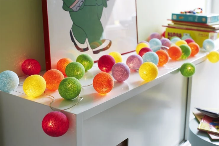 LED lyskæde med 20 bolde mange forskellige glade, klare farver