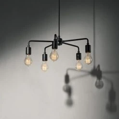 Lysekrone Designet af Norm Architects Tribeca serien er en blanding af lamper, pendler og lysekroner, alle inspireret af New York Citys glamour fra slutningen af 1930’erne. Navnet Tribeca refererer til en meget populær del af New York i Lower West Manhattan, trekanten syd for Canal Street. Forskellige former og design i Tribeca serien var skabt igennem en kreativ proces, hvor Søren Rose rejste rundt i USA og søgte efter smukke, gamle lamper og genbrugelige dele for at skabe hver unik artikel. Lyskilde medfølger ikke. Lampen bruger 5 stk. E27 pærer. Norm Architects Lysekrone Designer: Norm Architects Type: Lysekrone Materiale: Pulverlakeret stål Farve: Sort Mål: H: 15 cm, W/Ø: 76 cm Fatning: E27 Watt: 7-9Watt Energimærke: A++ Ledningstype: Tekstil Ledningslængde: 500 cm