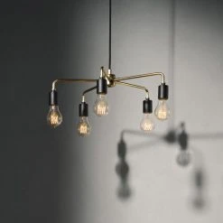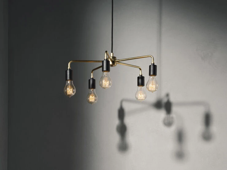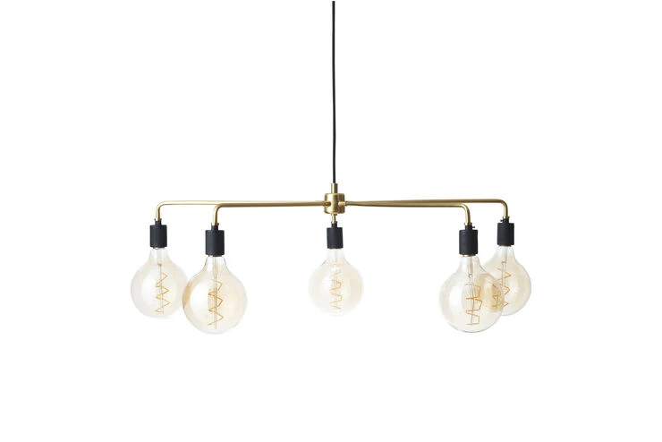 Lysekrone Designet af Norm Architects Tribeca serien er en blanding af lamper, pendler og lysekroner, alle inspireret af New York Citys glamour fra slutningen af 1930’erne. Navnet Tribeca refererer til en meget populær del af New York i Lower West Manhattan, trekanten syd for Canal Street. Forskellige former og design i Tribeca serien var skabt igennem en kreativ proces, hvor Søren Rose rejste rundt i USA og søgte efter smukke, gamle lamper og genbrugelige dele for at skabe hver unik artikel. Lyskilde medfølger ikke. Lampen bruger 5 stk. E27 pærer. Norm Architects Lysekrone Designer: Norm Architects Type: Lysekrone Materiale: Børstet messing Farve: Messing Mål: H: 15 cm, W/Ø: 76 cm Fatning: E27 Watt: 7-9Watt Energimærke: A++ Ledningstype: Tekstil Ledningslængde: 500 cm