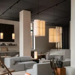 Hashira lampeserien fra MENU er designet af Norm Architects. Designet er inspireret af Japanske Washi papirlavere. Lamperne er både er lette og æstetiske, mens de giver et fabelagtigt lys grundet det elegante papirmateriale. Lamperne fra Hashira serien passer ind i de fleste hjem og hænger smukt over alt fra spisebordet til stuen. Hashira series fås i en del forskellige modeller. En bordlampe, en gulvlampe, to single pendler i en lille og stor udgave, samt to cluster modeller i henholdsvis en lille og stor model. Lyskilde: Max 40W E27 Ledningslængde: 5 m.