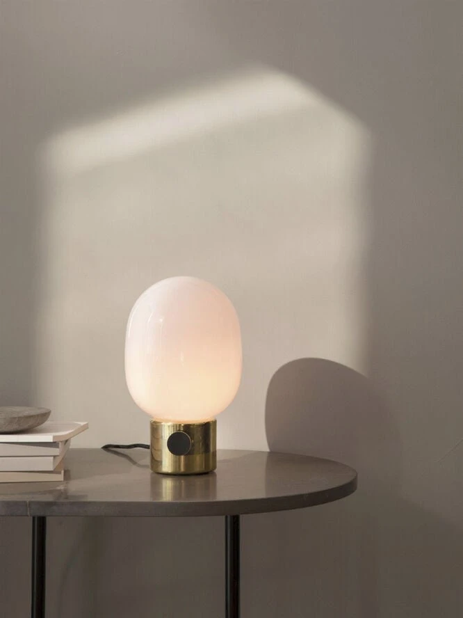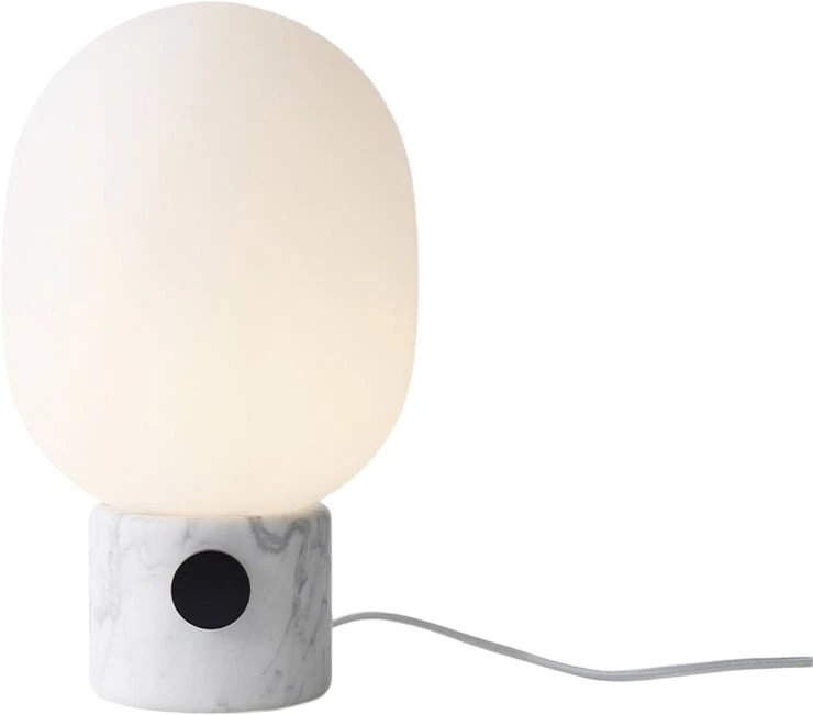 An instant classic, the JWDA Lamp is the kind of sculptural piece that turns heads and brings new life to a room. The contrast of the delicate, rounded glass with the sturdy metal base makes for a balanced and intriguing silhouette. [dimensions-start] H: 29 cm, Ø: 17 cm, G9 H: 32 cm, Ø: 19 cm, G9 (Marble Variant) Weight: 1,35 kg Weight: 2,1 kg (Marble Variants) [dimensions-end] [materials-start] Concrete Brass/Steel Opal Glass Electrical: 220V, Max 40W, IP20 Bulb Socket: G9 Cord: 200 cm Metal knob functions as switch and dimmer [materials-end] [additional-resources-start] DOWNLOADS PRODUCT FACT SHEET PRODUCT FACT SHEET (Marble) 2D/3D FILES ASSEMBLY INSTRUCTIONS [additional-resources-end]