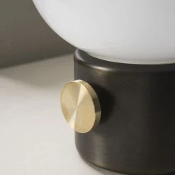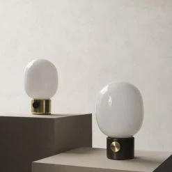 JWDA bordlampe designet af Jonas Wagell Den svenske designer Jonas Wagell blander det sarte og grove i en smuk lille lampe med betonbund og messingknap. Klar til at pryde dit sofabord, din hylde eller bordet ved siden af sengen.OBS: Pæren er ikke inkluderet. Pæren skal købes separat. JWDA concrete lampe Designer: Jonas Wagell Type: Bordlampe Materiale: Beton / porcelæn / messing Farve: Bronze messing Mål: Højde x bredde x længde: 29cm x 17cm