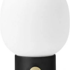 Our classic JWDA Lamp in a cordless version. Inspired by traditional oil lamps and crafted in contrasting materials, the JWDA Portable has the freedom and flexibility to move anywhere you want. Delivering 10 hours of adjustable light when fully charged, the small-scale design is defined by its elliptical glass shade and solid metal base with a brass dimmer switch. It features a USB charger at the base, for standard sockets as well as MENUs Charging Board, which reanimates multiple devices in a single sitting. [dimensions-start] H: 21,5 cm, Ø: 14,5 cm, W: 14,5 cm [dimensions-end] [materials-start] Steel, glass, ABS [materials-end] [additional-resources-start] DOWNLOADS PRODUCT FACT SHEET 2D/3D FILES ASSEMBLY INSTRUCTIONS [additional-resources-end] [vimeo-video-embed-start] https://vimeo.com/603855567 [vimeo-video-embed-end]