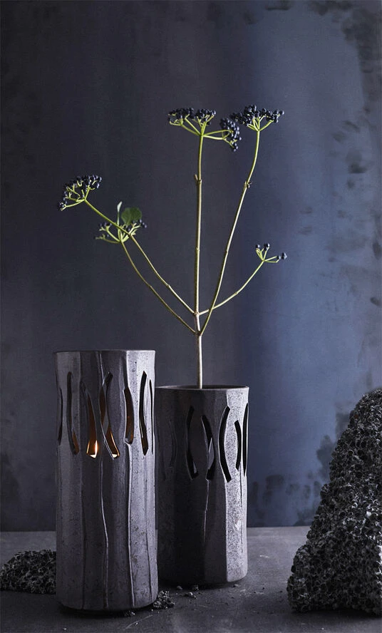 De smukke lanterner er skabt som en hyldest til jordens element ild og lys. Og derfor er Gaia serien også opkaldt efter den græsk gudinde Gaia. Lanternerne er designet og skabt i hånden efter af ler, hvorefter de er glaseret med mørk rustik glasering, som føles og lyder metallisk. De smukke udskæringer i lanternen kaster et blød og flammende lys ud, som danner legende lys og skygger i mørket. Lanternerne er indendørs lanterner, da de ikke tåler frost. Men de kan også bruges som vase.
