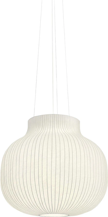 The design has soft, playful forms for a modern expression. Provides both diffused as well as direct lighting, the latter through its top and bottom opening. Made from a cocoon material, consisting of tiny strands that make a complex, intriguing structure.