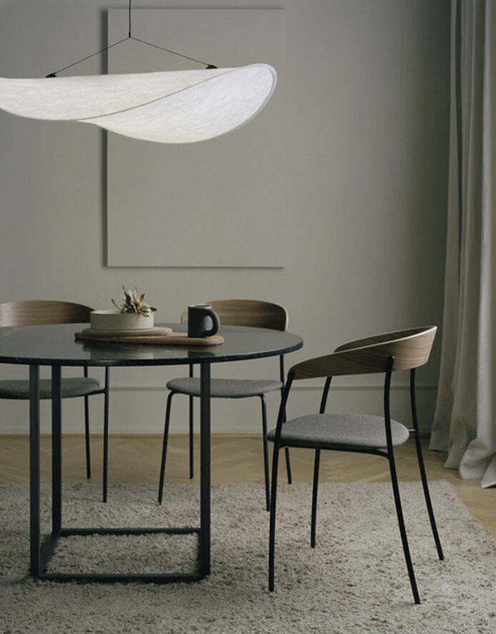 Tense pendlen strækker sig næsten 1 meter i længden og ligner en blød oplyst sky. En moderne konstruktion, det bløde Tyvek materiale diffusere lyset smukt og er et materiale der både er holdbart, blødt og 100% genanvendeligt. Udført med en slank LED-lyskilde. Denne lampe er en yderst moderne tilgang til belysning.