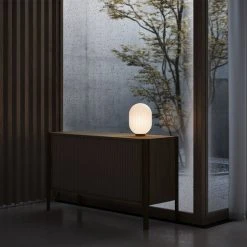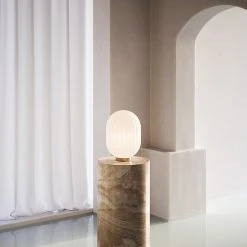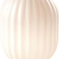 Bright Modeco er en mundblæst glaspendel. Lampen fremstår mat, da den har fet en specialbehandling. Toppen af lampen er afsluttet med solidt messing. Lampen kommer med en tre meter stofledning og en E27 fatning. Vi anbefaler en matteret lyskilde, da en klar LED lyskilde kan kaste skygger på indersiden af glasset. Ordet Modeco er en sammentrækning af det enogtyvende århundredes mest dominerende stilperioder, art deco og modernismen. Lampen forsøger at forene de to perioder.