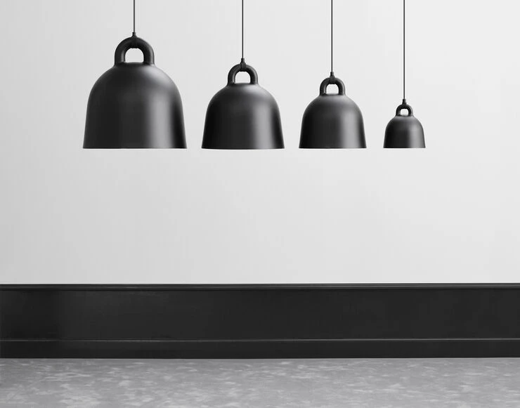 Bell er en loftlampe i en ikonisk klokkeform, hvor der er kræset for de få, men enklte detaljer.Bell har en jævn, rund overflade, der giver lampen et støbt udtryk. Bell giver et godt lys med den hvide inderside.