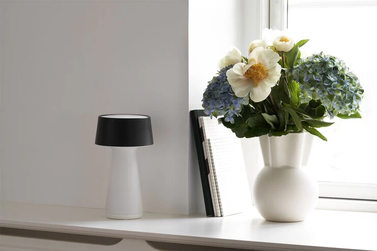 Ember er en skøn lille lampe, der er nem at oplade. Med sit bløde lys fungerer den godt som natlampe til soveværelset. Du kan også tage Ember med udenfor, når du vil nyde en aftenstund på terrassen eller altanen. I bunden af Ember finder du en lysdæmper. Her kan du skifte imellem Embers tre lysstyrker. Selve designet minder om en klassisk bordlampe, men som en opfindsom detalje, så kommer lyset ud af armaturet i opalglas.