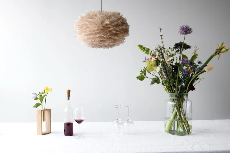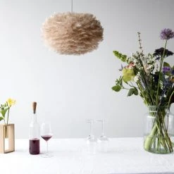 Umage Eos er lavet af naturlige gåsefjer der gør hver eneste Eos lampe unik. Umage Eos giver et blødt lys og er en elegant og fortryllende lampe, selv når den er slukket. Umage Eos findes i 4 størrelser, der hver især komplimenterer ethvert rum.
