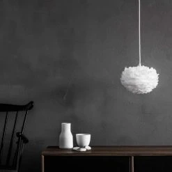 VITA Eos er lavet af naturlige gåsefjer der gør hver eneste Eos lampe unik. VITA Eos giver et blødt lys og er en elegant og fortryllende lampe, selv når den er slukket. VITA Eos findes i 5 størrelser og 2 farver (hvid og light grey) , der hver især komplimenterer ethvert rum.