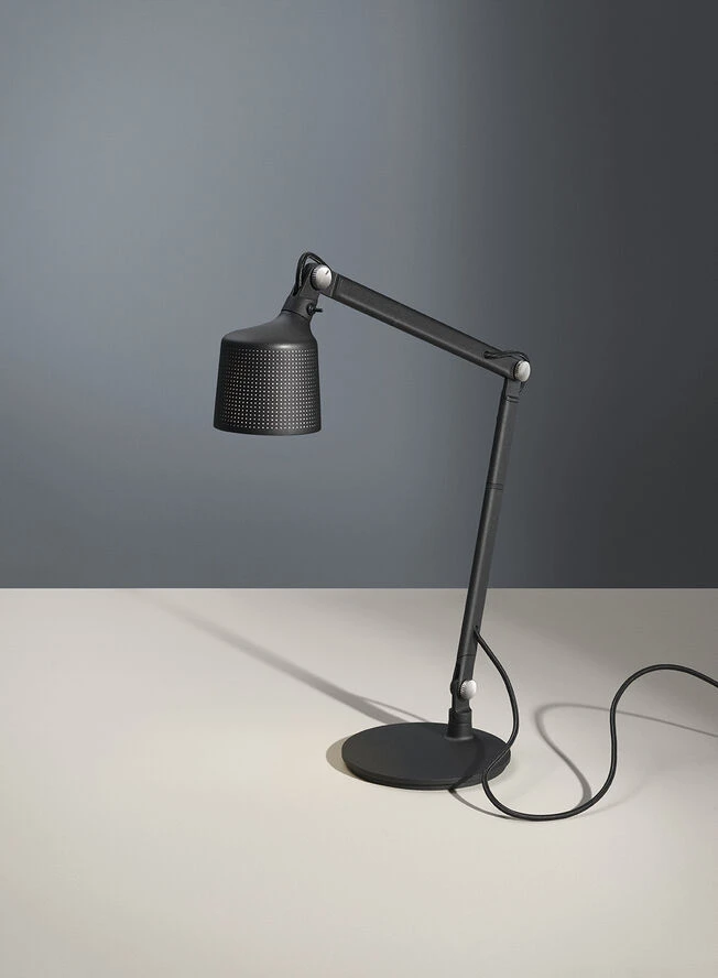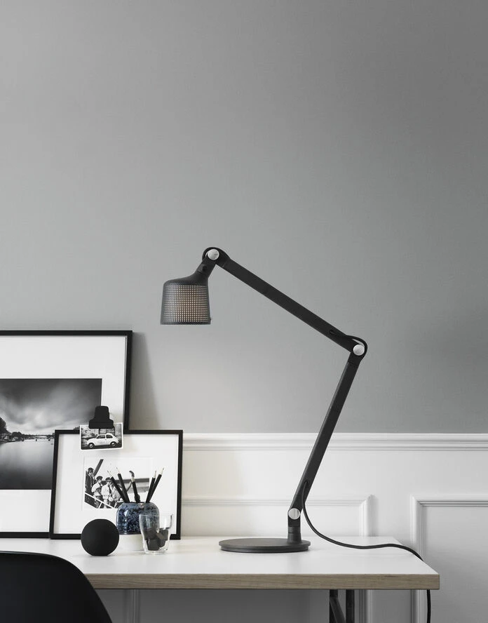 Vipp bordlampen er udstyret med analoge detaljer såsom en justérbar arm til fokuseret lys, fingerskruer til at låse lampens position og en solid base for stabilitet. Lampen er nøjsomt forarbejdet i pulverlakeret aluminium, og en perforeret skal kombineret med matteret, støbt glas sikrer en behagelig diffusion af lys. Grundet den hurtige udvikling inden for LED teknologi har alle Vipp lamper en udskiftelig LED lyskilde. Det gør det muligt for dig løbende at opdatere din Vipp lampe til bedste lyskvalitet og giver dig en lampe, der er tidløs i både design og funktion.