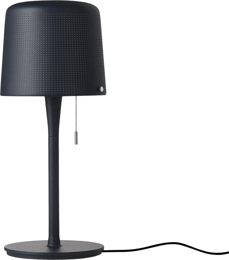 Vipp bordlampen er ideel til stuen eller soveværelset. Bordlampen er udstyret med en træksnor og en solid base der giver stabilitet. En indvendig reflektor styrer lyset lige nedad og den perforerede lampeskærm kaster et blødt lys, hvilket gør den anvendelig på sengebordet eller på en skænk.