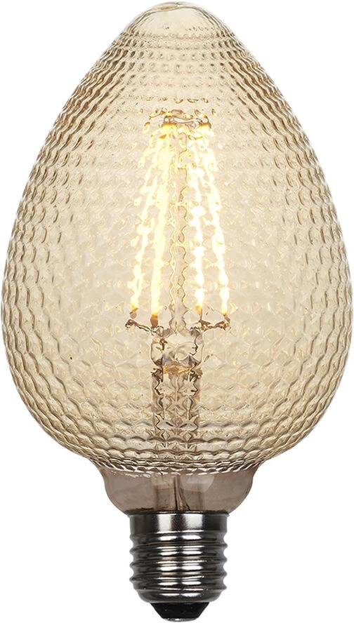 Smart og dekorativ pære med hyggelys. Denne LED lyskilde giver et varmt behageligt lys, og med det smukke design som vi kender det fra de gode gamle dage – nemlig glødetråden, danner denne rammen om at kunne skabe samme stemning med hyggeligt lys til behagelige omgivelse.